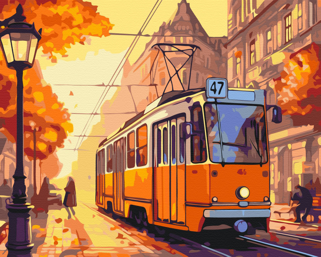 Hozd el a város őszi hangulatát otthonodba az "47-es villamos" számfestő segítségével! Ez a festmény Budapestt ikonikus, 47-es villamosát ábrázol, amely az őszi falevelek színpompás árnyalatai között halad a város utcáin. A meleg narancs és arany árnyalatok nosztalgikus érzést keltenek, miközben a villamos elegánsan közlekedik a romantikus őszi utcákon. Fesd meg ezt a hangulatos városi jelenetet, és hozd el otthonodba a nosztalgia, a városi élet és az ősz meleg színeit!