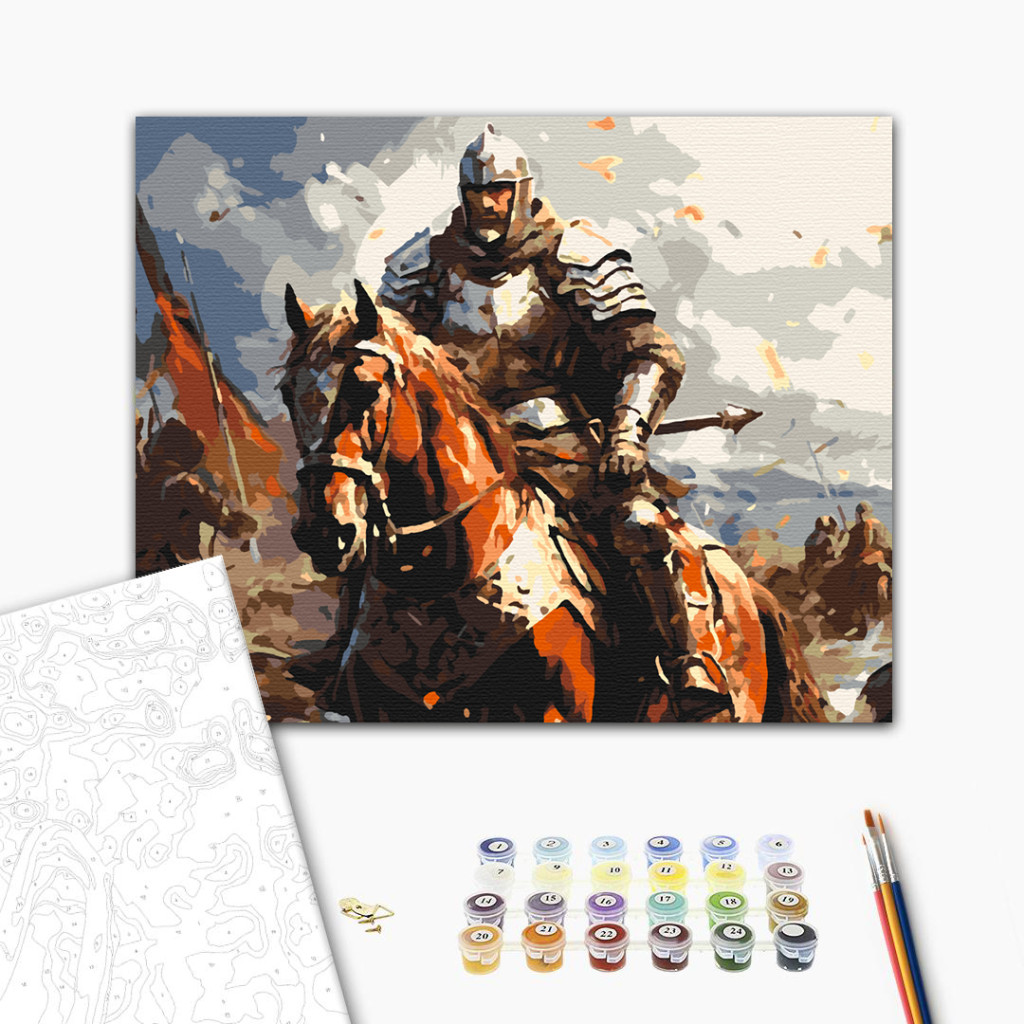 Keretre feszített, számozott kifestőkészlet előrajzolt vászonnal, akrilfestékekkel, ecsettel és segédlettel.