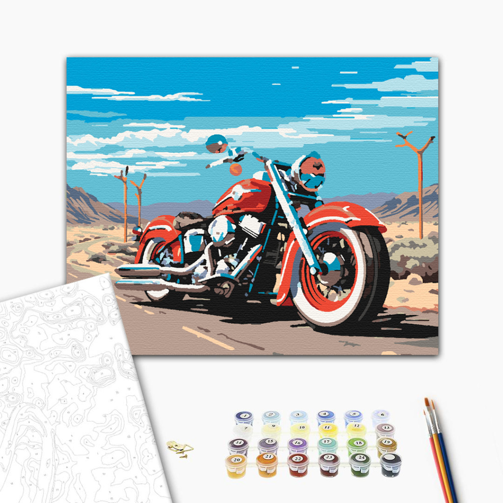 Keretre feszített, számozott kifestőkészlet előrajzolt vászonnal, akrilfestékekkel, ecsettel és segédlettel.
