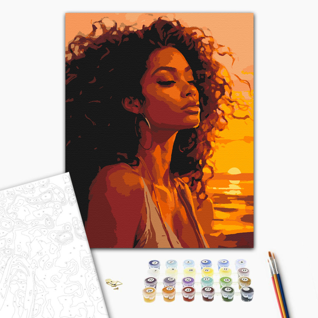 Keretre feszített, számozott kifestőkészlet előrajzolt vászonnal, akrilfestékekkel, ecsettel és segédlettel.