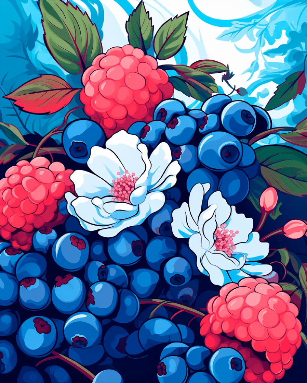 Bogyóbokor - Számfestő készlet kereten 40x50