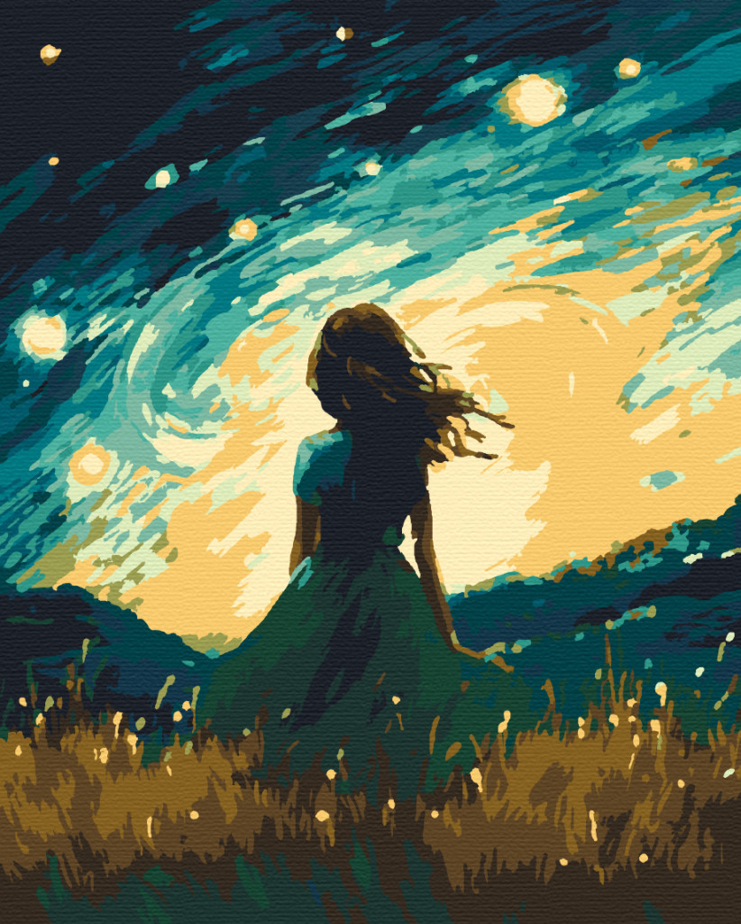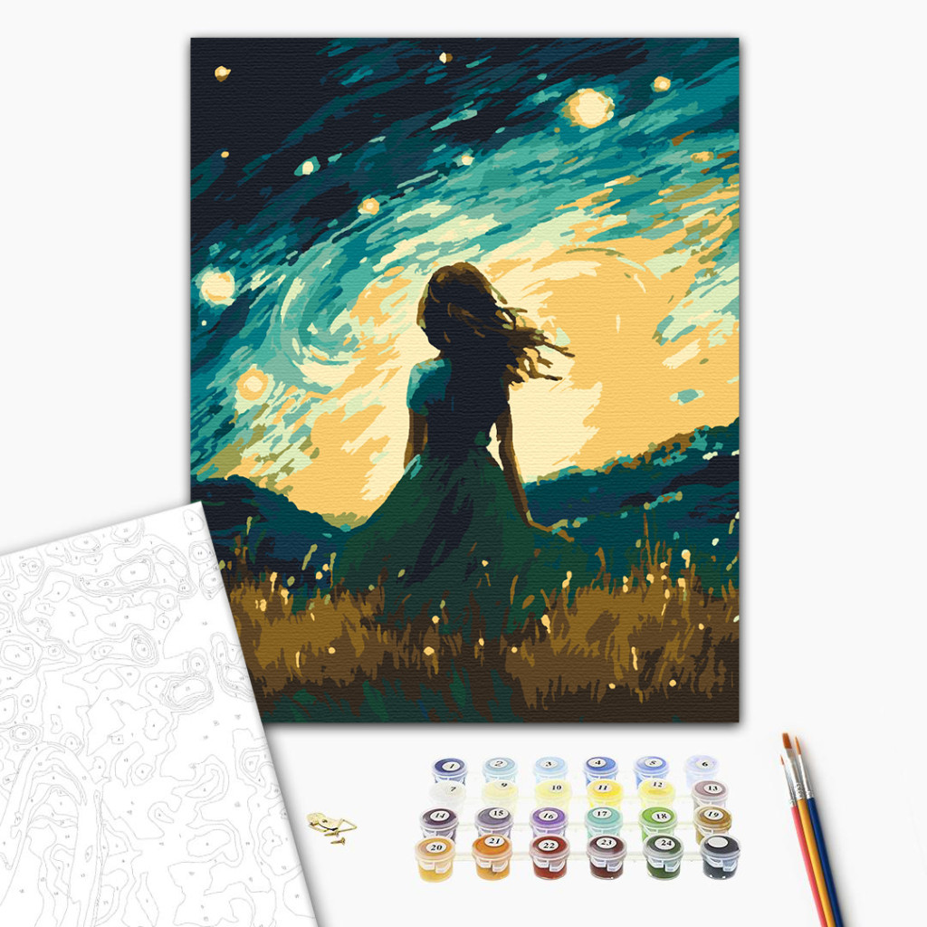Csillagfényes éjszaka - Számfestő készlet kereten 40x50