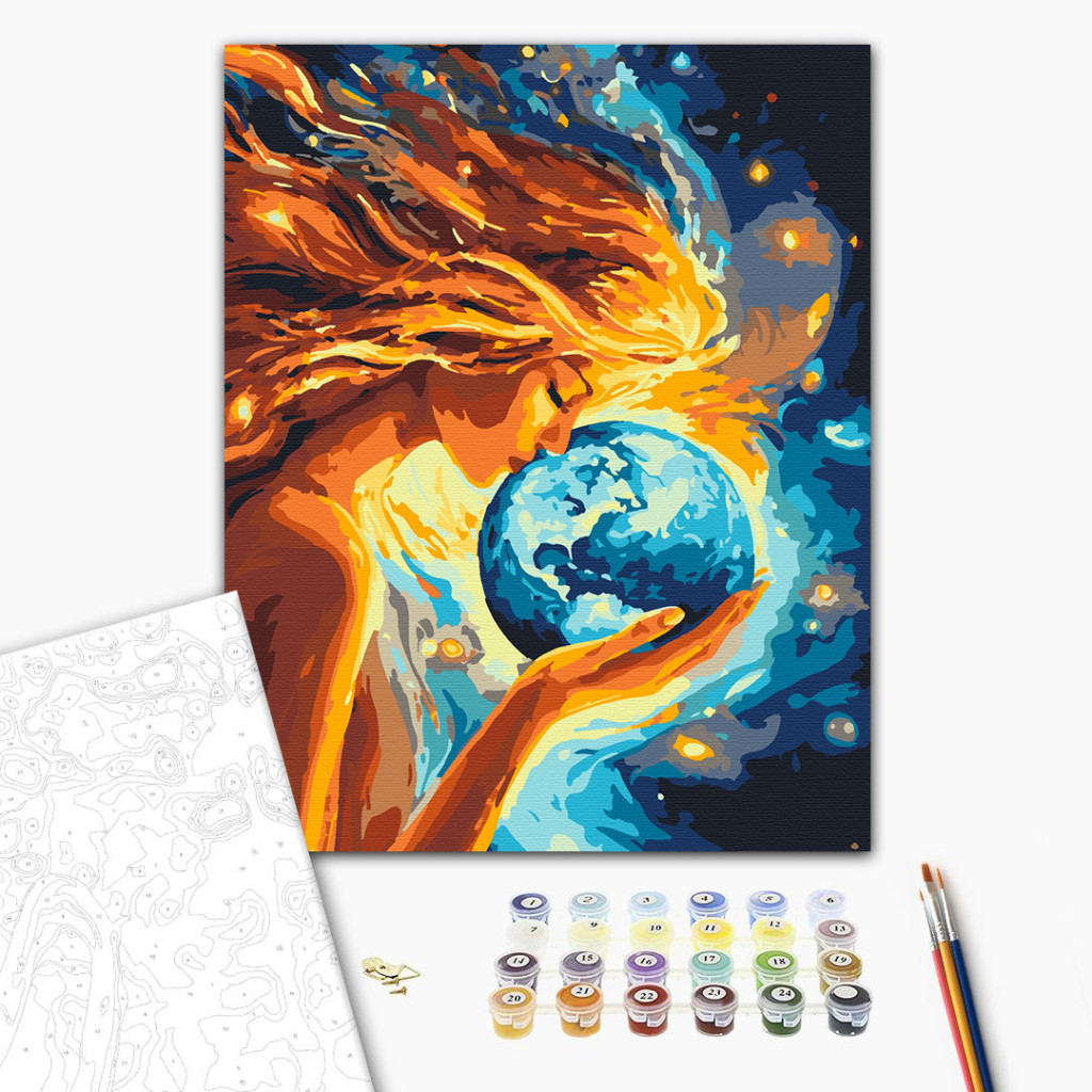 Keretre feszített, számozott kifestőkészlet előrajzolt vászonnal, akrilfestékekkel, ecsettel és segédlettel.