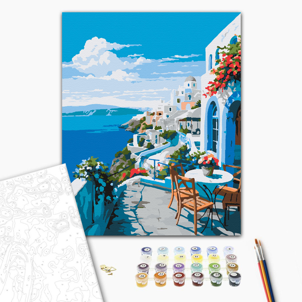 Keretre feszített, számozott kifestőkészlet előrajzolt vászonnal, akrilfestékekkel, ecsettel és segédlettel.