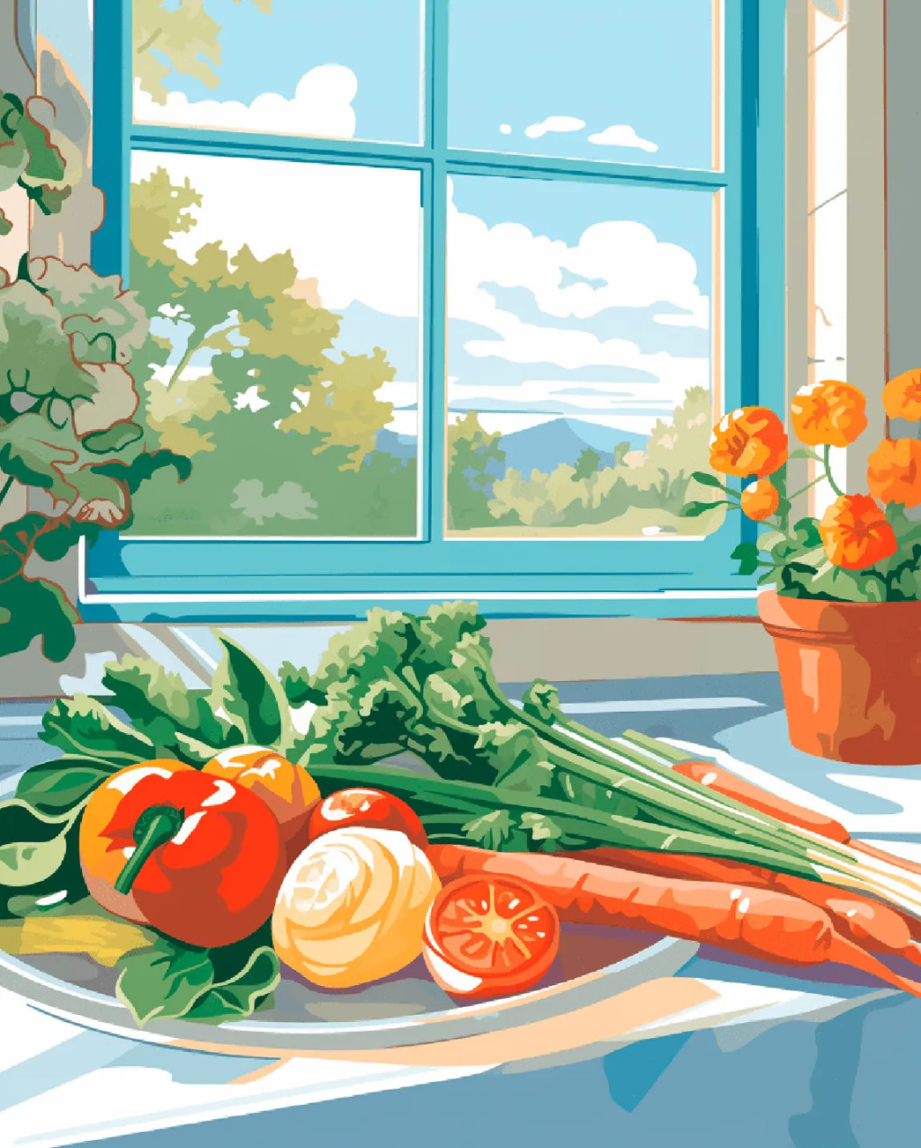 Friss zöldségek - Számfestő készlet kereten 40x50