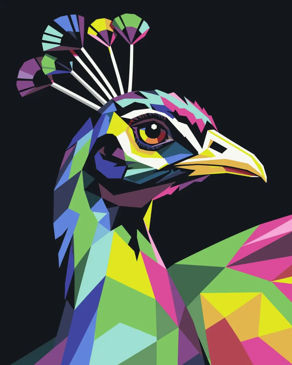 Geometrikus páva portré - Számfestő készlet kereten 40x50