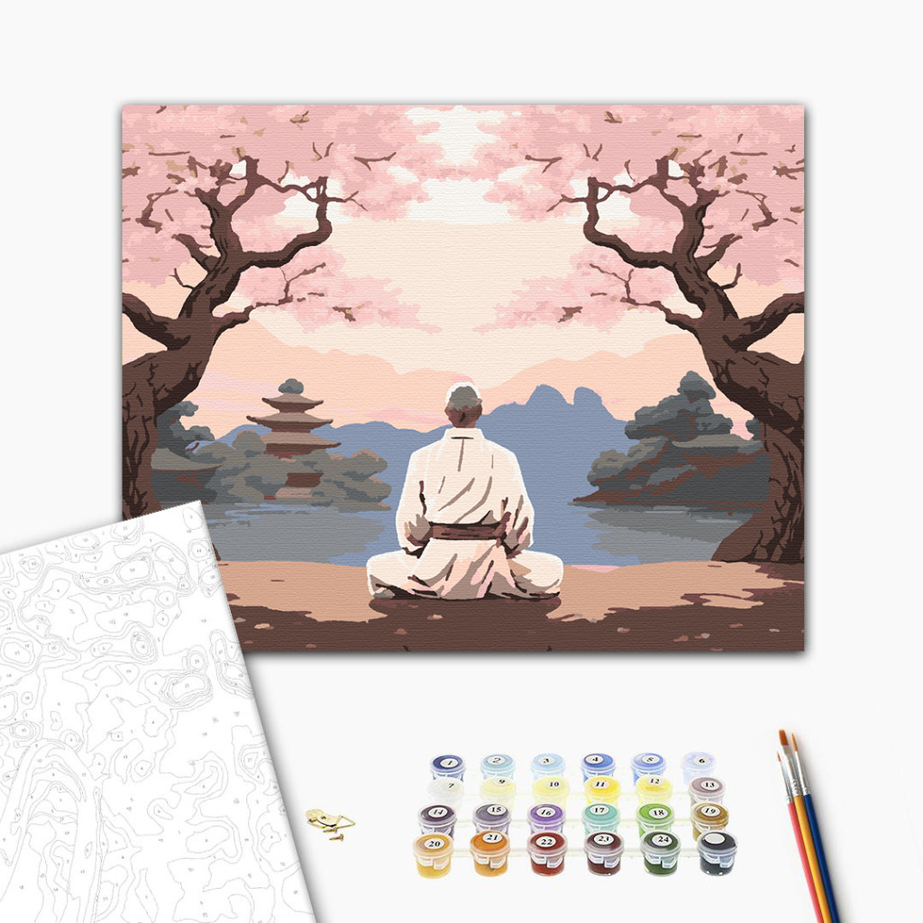 Keretre feszített, számozott kifestőkészlet előrajzolt vászonnal, akrilfestékekkel, ecsettel és segédlettel.