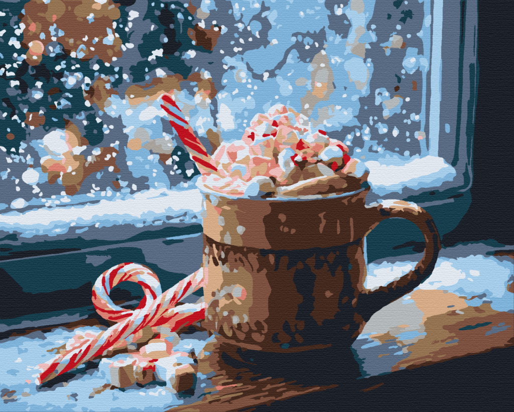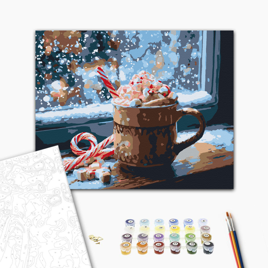 Merülj el a karácsonyi meghittségben ezzel az édes pillanatot megörökítő festménnyel! A "Karácsonyi kakaó" című számfestő egy gőzölgő bögre forró csokit ábrázol habbal, cukorpálcával és apró mályvacukrokkal, a háttérben pedig varázslatos hóesés látható. Tökéletes választás, ha szereted az ünnepi hangulatot, és szívesen dekorálnád otthonod egy melegséget sugárzó alkotással. Ideális számfestő készlet, amely garantáltan mosolyt csal az arcodra.