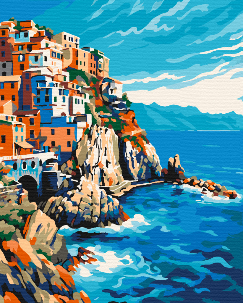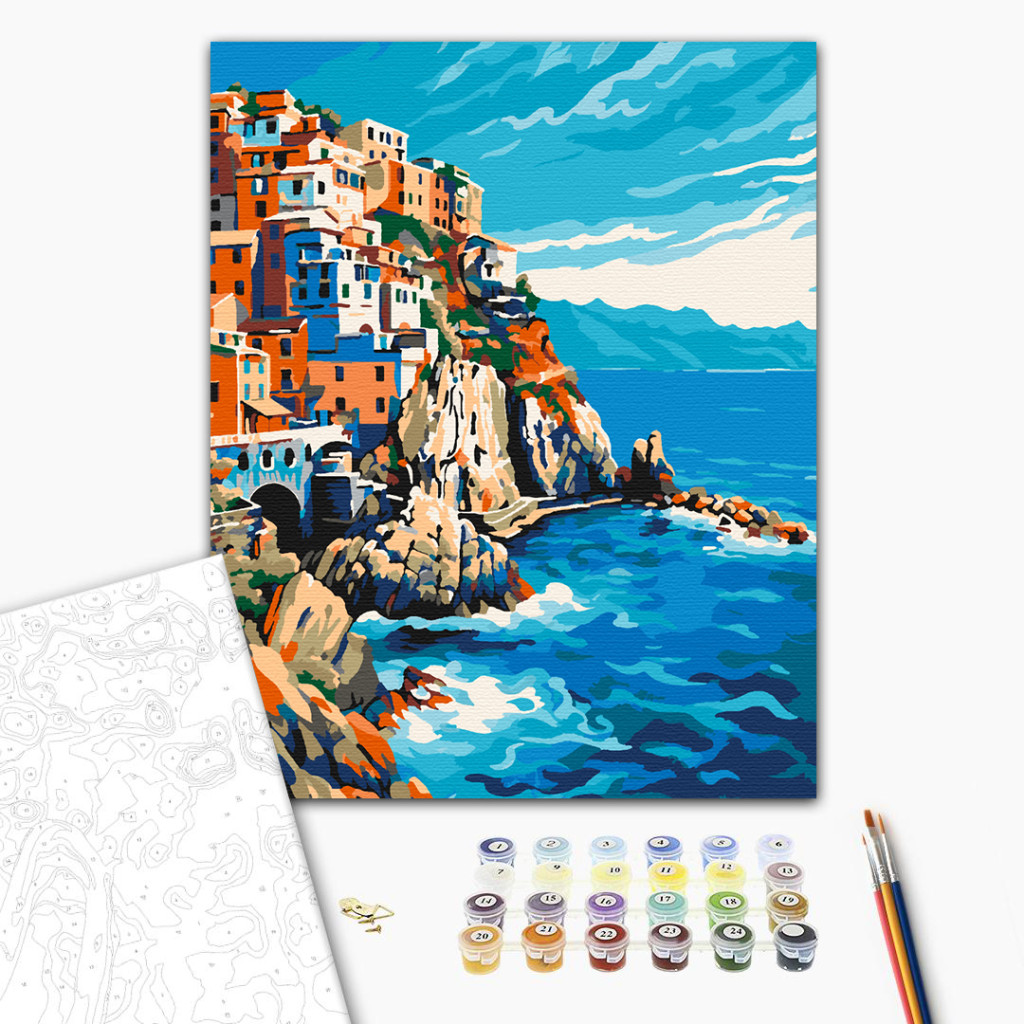 Keretre feszített, számozott kifestőkészlet előrajzolt vászonnal, akrilfestékekkel, ecsettel és segédlettel.