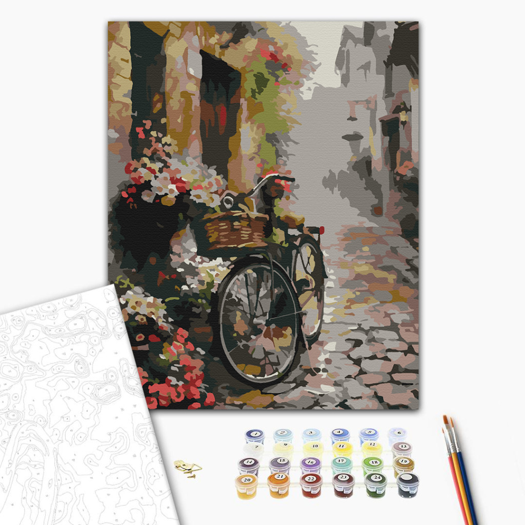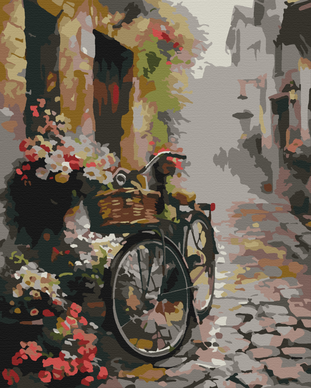 Kerékpár a macskakövön - Számfestő készlet kereten 40x50
