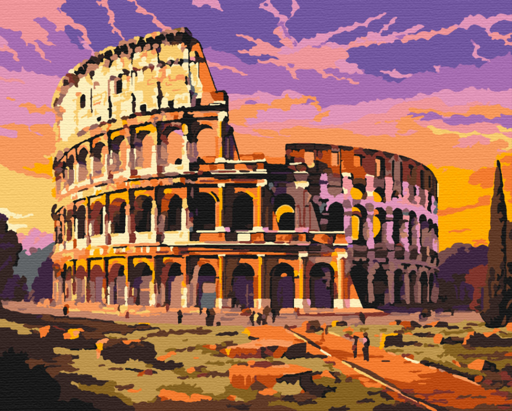 Kolosszeum a naplementében - Számfestő készlet kereten 40x50