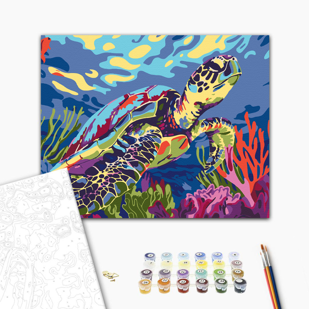 Korallzátony teknőssel - Számfestő készlet kereten 40x50