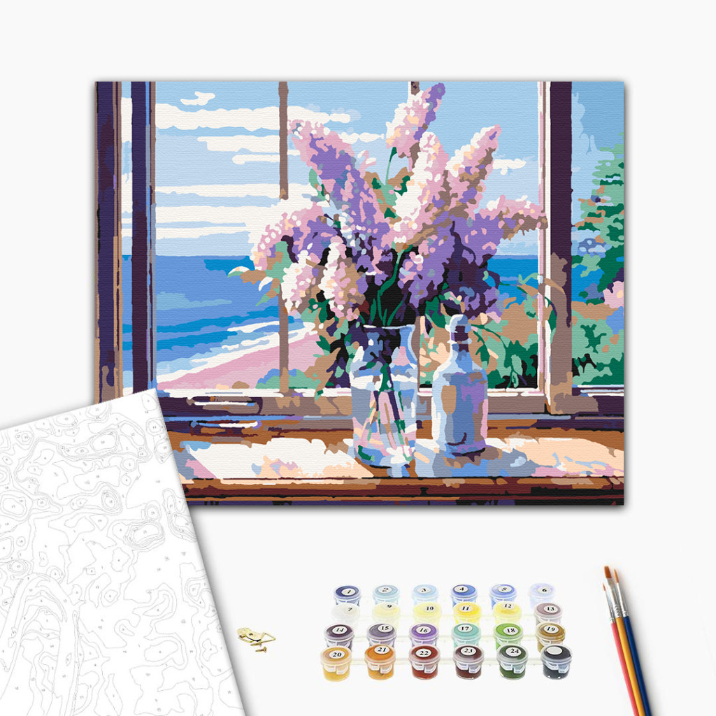 Keretre feszített, számozott kifestőkészlet előrajzolt vászonnal, akrilfestékekkel, ecsettel és segédlettel.