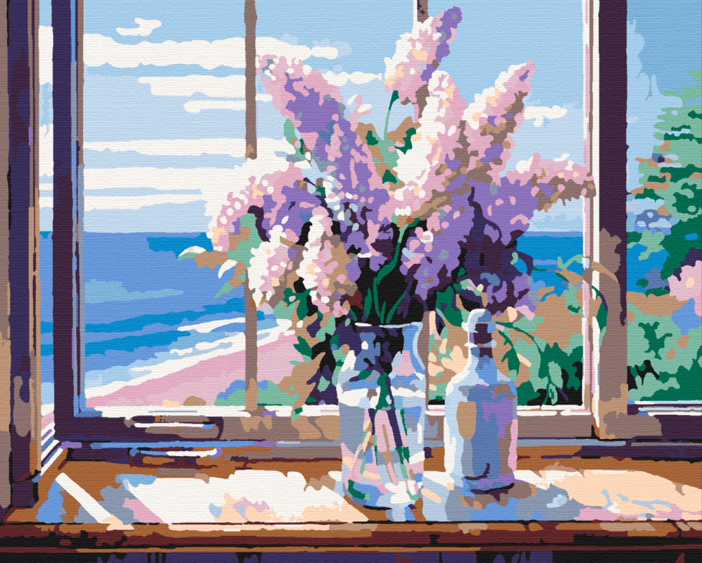 Lila virágok - Számfestő készlet kereten 40x50