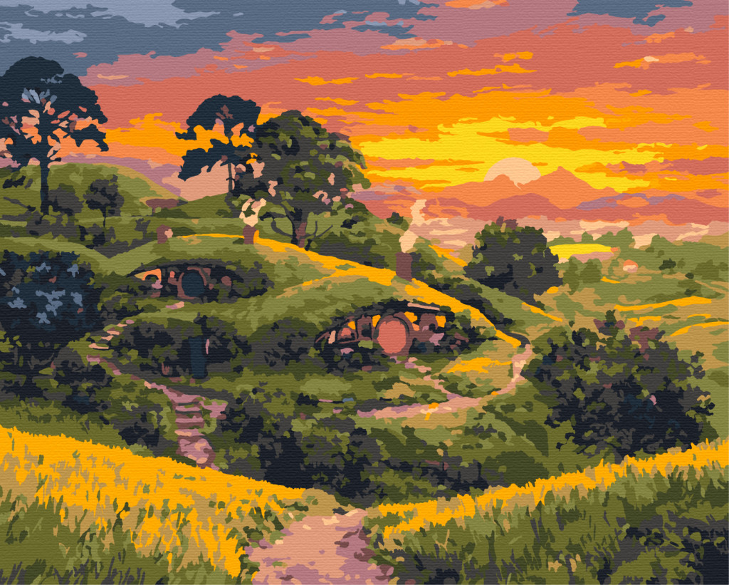 Fedezd fel a dombok ölelésében rejtőző, mesebeli házikók világát! Ez a számfestő egy meleg naplementében úszó, varázslatos tájat ábrázol, ahol a természet és a fantázia találkozik. A festés során szinte hallani véled a madárcsicsergést és érezni véled a kéményekből szálló füst illatát. Egy valódi menedék a mindennapok rohanása elől – ecsetvonásonként hozza el az otthonosság érzését.