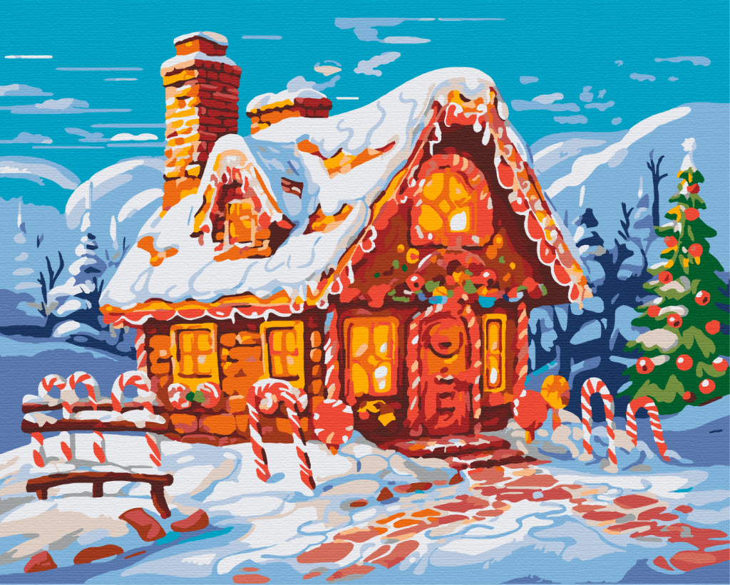 Mézeskalács házikó - Számfestő készlet kereten 40x50