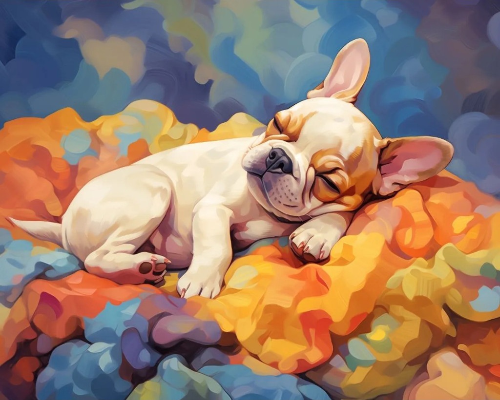 Keretre feszített, számozott kifestőkészlet előrajzolt vászonnal, akrilfestékekkel, ecsettel és segédlettel.