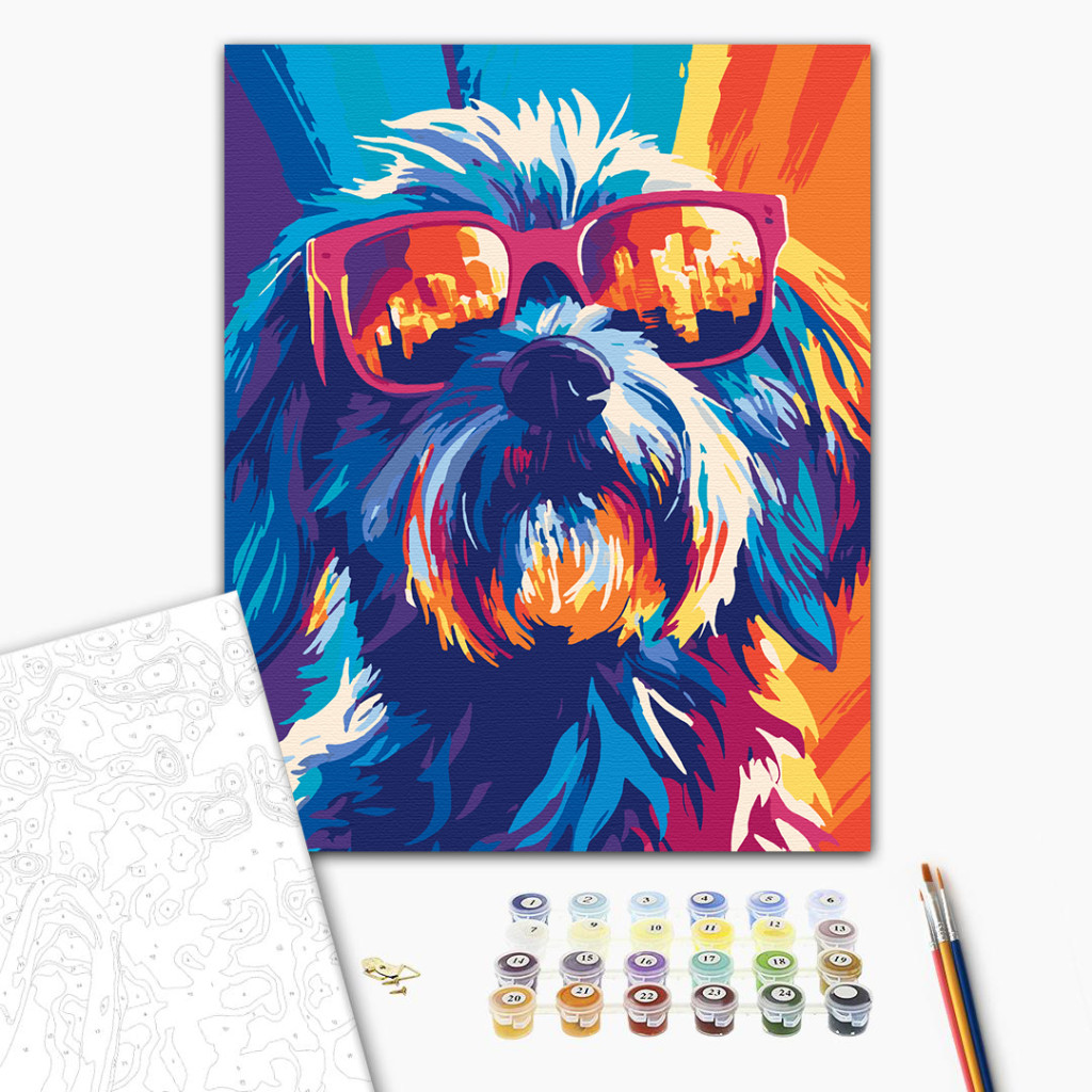 Keretre feszített, számozott kifestőkészlet előrajzolt vászonnal, akrilfestékekkel, ecsettel és segédlettel.