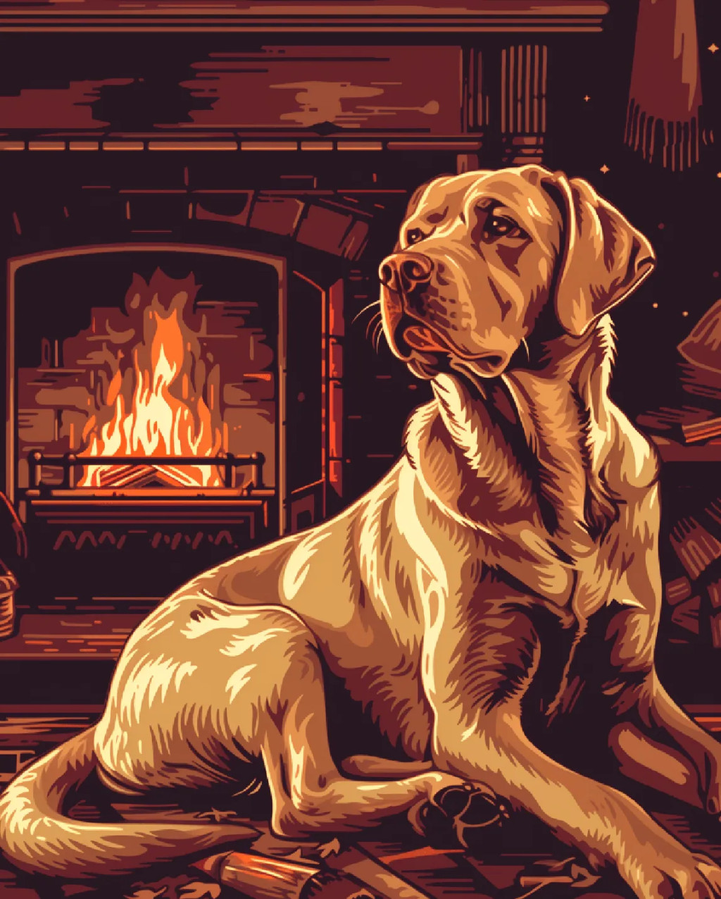 Retriver a kandalló mellett - Számfestő készlet kereten 40x50