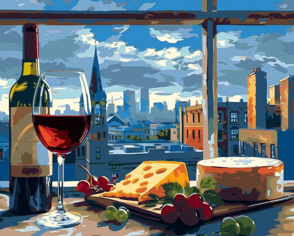 Sajt és bor - Számfestő készlet kereten 40x50