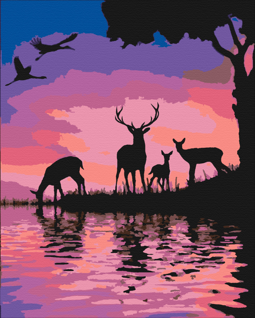 Szarvasok a naplementében - Számfestő készlet kereten 40x50