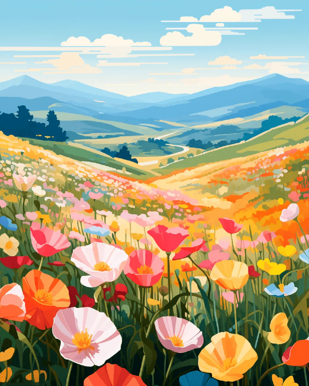 Színes virágmező - Számfestő készlet kereten 40x50