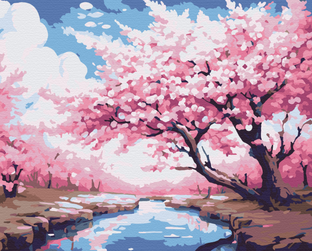Tavaszi cseresznyeliget - Számfestő készlet kereten 40x50
