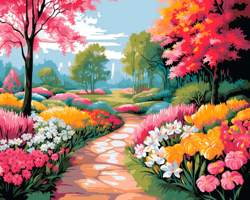 Keretre feszített, számozott kifestőkészlet előrajzolt vászonnal, akrilfestékekkel, ecsettel és segédlettel.