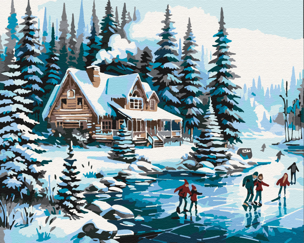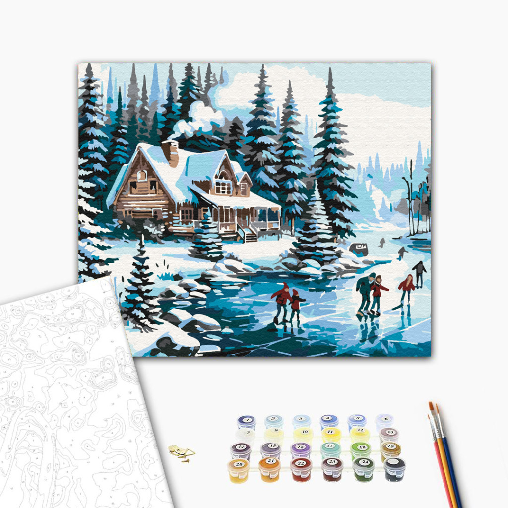 Keretre feszített, számozott kifestőkészlet előrajzolt vászonnal, akrilfestékekkel, ecsettel és segédlettel.