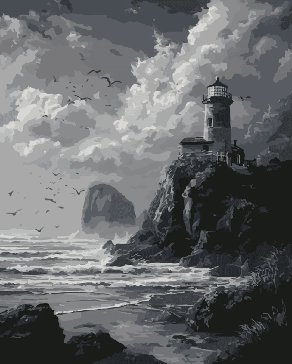 Viharos világítótorony - Számfestő készlet kereten 40x50