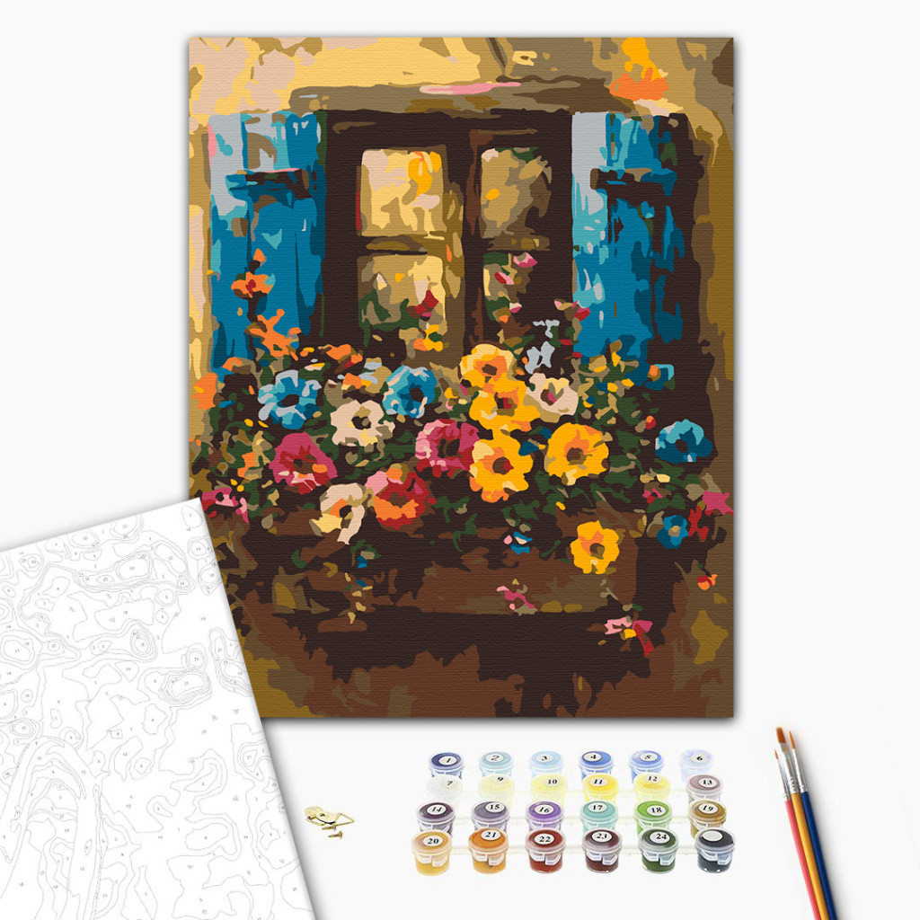 Virágzás az ablakban - Számfestő készlet kereten 40x50