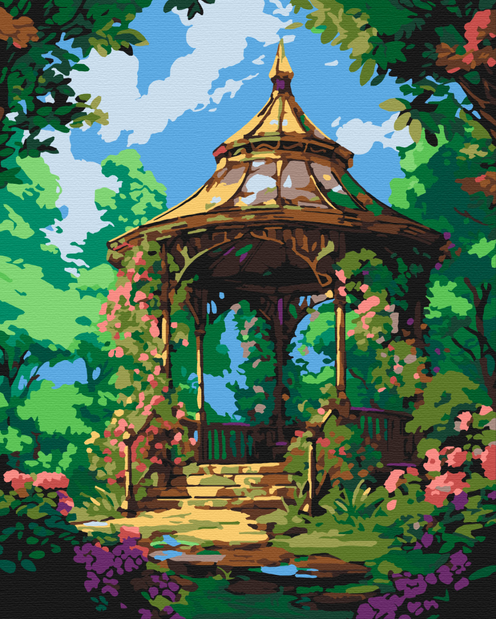 Virágzó pavilon - Számfestő készlet kereten 40x50